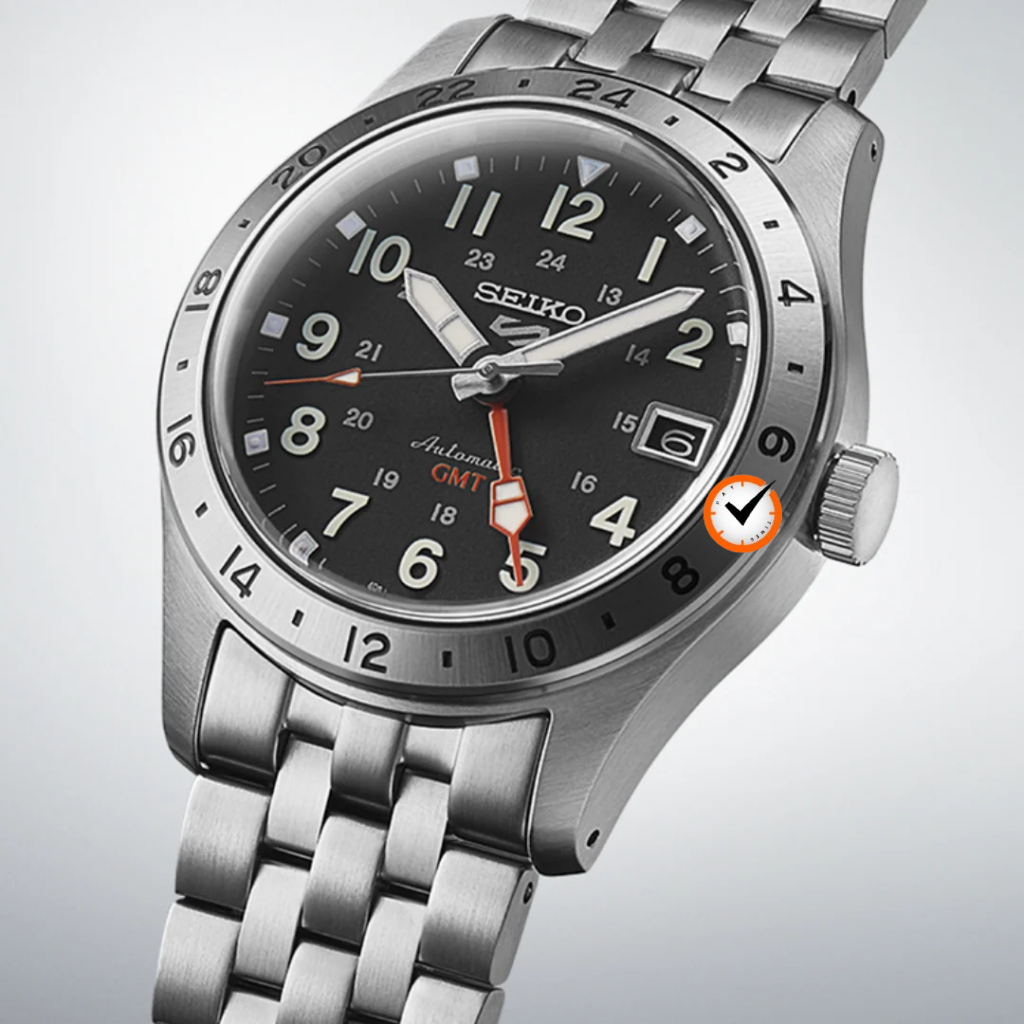 For those who want a hint of color, the SSK005K1 features a striking orange dial, complemented by a deep black GMT hand for quick legibility. With its orange dial, this timepiece is definitely one of the sportier ones, perfect for adventure or for everyday wear.
